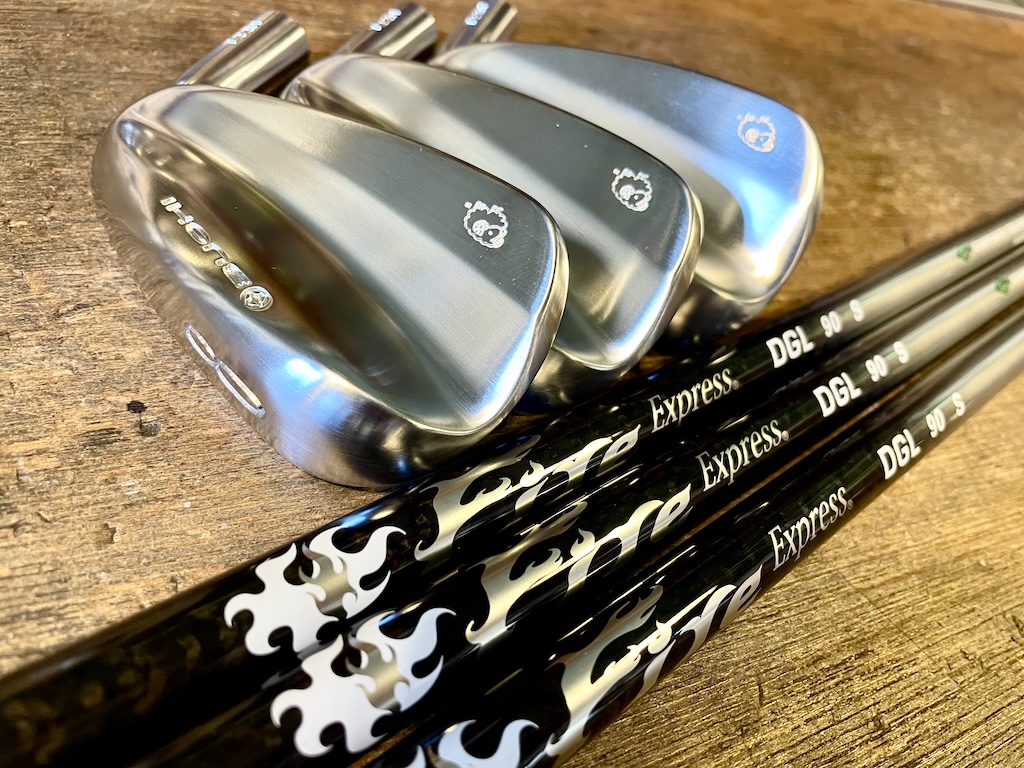 シャフトにはファイアーエクスプレスのハイエンドモデルDGLをチョイス。高弾性シートを贅沢に使用したアイアン専用モデル。ドライバー用並みの価格ですが、高い性能はもちろん所有感も最高です。